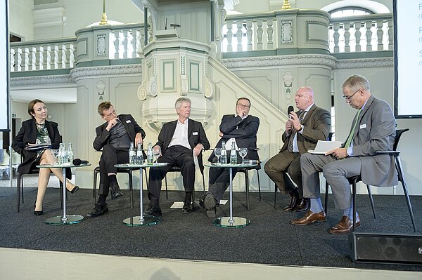 In der anschließenden Podiumsdiskussion mit dem Fokus auf Energie drehte sich viel um die Frage, welche Rolle der Wasserstoff in Zukunft spielen wird. „Sollte man den Wasserstoff z.B. auch im EnWG berücksichtigen?“, fragte Prof. Christian Held. MdB Bernd Westphal ist sich sicher, dass sich im Wettstreit der Innovationen die beste Technologie durchsetzen wird; um ein investitionsfreundliches Umfeld zu schaffen, müsse da möglicherweise der Gesetzgeber aber noch mal ran. Jedenfalls sollte man diesen Bereich nicht den Gerichten zur Entscheidung überlassen. Die infrastrukturellen Voraussetzungen sieht Stefan Kapferer, Hauptgeschäftsführer des BDEW, zu wenig thematisiert in der politischen Diskussion. Der Kohleausstieg sei machbar, aber bitte mit dem Fokus auf die Infrastruktur. Schließlich brauche man auch für den Fall, dass PtX-Produkte in anderen Ländern hergestellt werden, in Deutschland die nötige Infrastruktur für den Transport. Dr. Frank Brinkmann, Vorstandsvorsitzender der ENSO Energie Sachsen Ost AG, sprach in diesem Zusammenhang auch von einem antizipativen Denken, das bei der Infrastruktur notwendig ist.