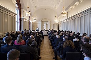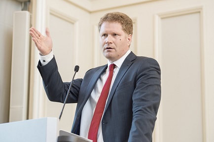 Dr. Patrick Graichen warnte in seinem Impulsvortrag vor einem business as usual bei der Energiewende: „Ein einfach so weiter verbietet sich“, so der Direktor des Think Tanks Agora Energiewende, angesichts vier zentraler Herausforderungen. Im Bereich Klimapolitik führe sich momentan noch niemand so richtig vor Augen, welche Anforderungen tatsächlich notwendig sind, um das Zwei-Grad-Ziel zu erreichen. Der größte Teil der Emissionen liege im Energiebereich. Umgerechnet auf die unterschiedlichen Energieträger würde das laut Koalitionsvertrag 50 % weniger Kohle, 50 % weniger Öl und 20 % weniger Gas bedeuten. Gerade für Öl fehle aktuell noch jegliche energiepolitische Diskussion. Die industriepolitischen Herausforderungen sind mit technologischen Herausforderungen verknüpft: Wie schaffen wir es, für Windkraft und PV ein internationales Geschäft zu machen und die Weltmärkte für deutsche Unternehmen zu sichern? Graichen bedauert, dass sich die vier Herausforderungen regelmäßig gegeneinander ausspielen und sich gegenseitig lähmen. Es existiere ein „organisiertes Gegeneinander“, so der Agora-Direktor.