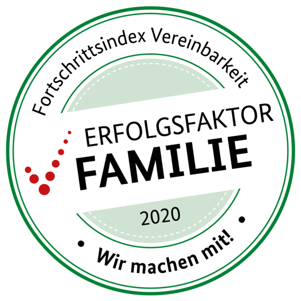 Wir freuen uns, dass wir Teil des Erfolgsfaktors Familie sein dürfen. Mit dem Fortschrittsindex Vereinbarkeit, das vom Bundesministerium für Familie, Senioren, Frauen und Jugend konzipiert worden ist, können wir die Entwicklung unserer familienfreundlichen Unternehmenskultur fortlaufend messen und einordnen. Wir bekommen auch wertvollen Input und konkrete Hinweise zum Thema Familienfreundlichkeit.